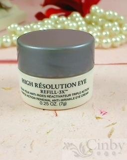 High Resolution Eye Refill-3XLancomeLancome .25 oz / 7 g Eye Promo Size High Resolution Refill-3X Triple Action Renewal Anti-Wrinkle Eye Cream Lancome High Resolution Refill - 3X Triple Action Renewal Anti Wrinkle Eye Cream For the first time from Lancome, an exclusive Refill-3X complex helps boost the synthesis of the three natural skin fillers-collagen, hyaluronic acid and elastin-in the eye contour.Visible anti-wrinkle results:Immediately, the eye contour appears smoother and more luminous.In four weeks, wrinkles appear significantly reduced, with a visible improvement in the appearance of dark circles and puffiness.Ophthalmologist-tested.Dermatologist-tested for safety.In-vitro testing on dipeptide and alfalfa extract shows a boost in the synthesis of collagen, hyaluronic acid and elastin.Lancome .25 oz / 7 g Eye Promo Size High Resolution Refill-3X Triple Action Renewal Anti-Wrinkle Eye Cream Feature