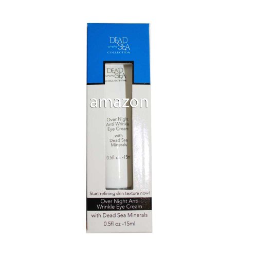 Dead Sea Collection- Over Night Anti Wrinkle Eye Cream."The delicate skin around your eyes requires a special, gentler touch. This advanced formula helps reduce fine lines and wrinkles around your eyes. Helps smooth and protect this fragile area from dehydration and the signs of aging. Gently pat around eyes."OVERNIGHT ANTI-WRINKLE EYE CREAM WITH DEAD SEA MINERALS (.5 OZ.) MADE IN ISRAEL (View amazon detail page) Feature